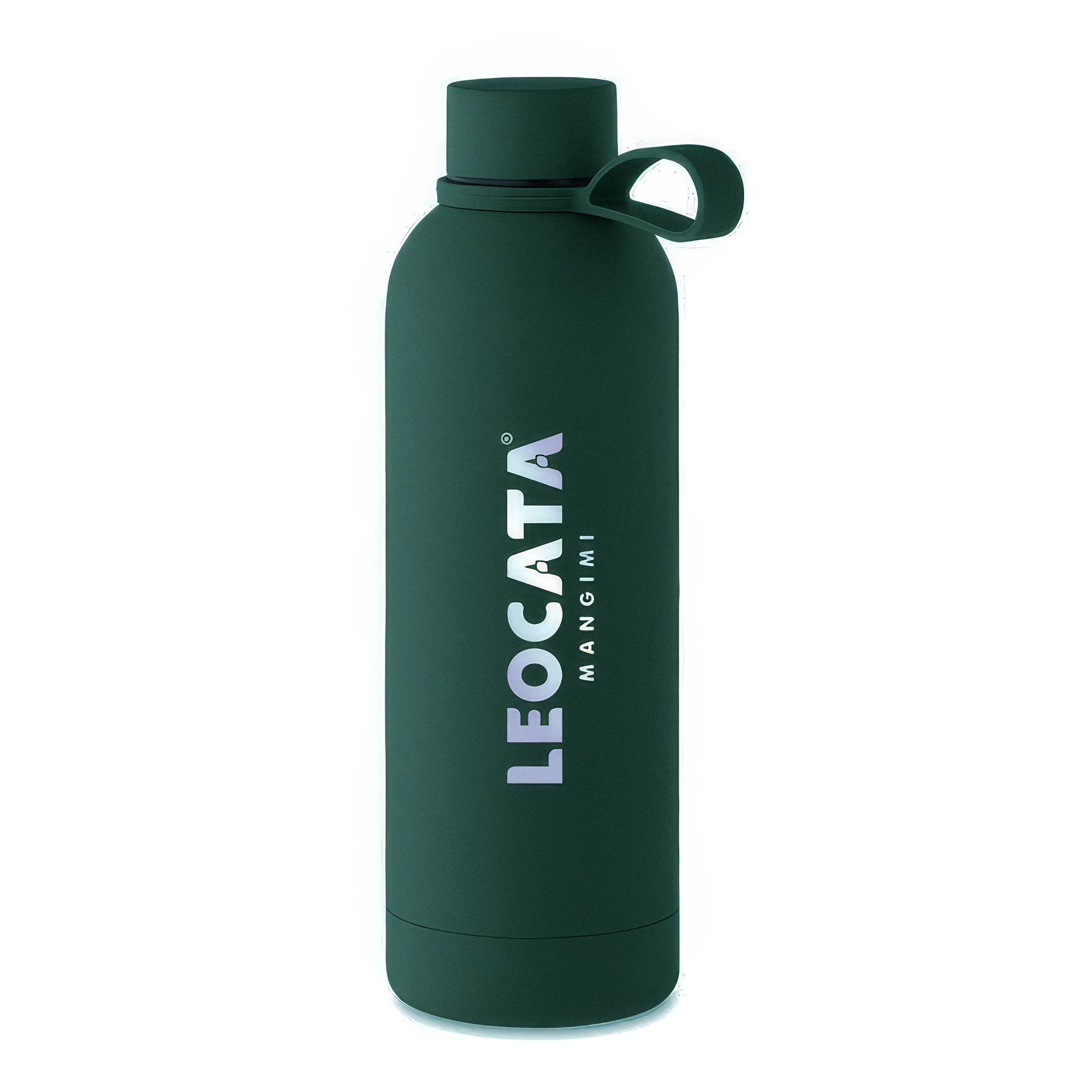 Bottiglia isolante a doppio strato realizzata in acciaio inox riciclato, ideale per mantenere la temperatura delle bevande sia calde che fredde. Design ergonomico con finitura in gomma e pratico manico in silicone per garantire una presa salda e confortevole.